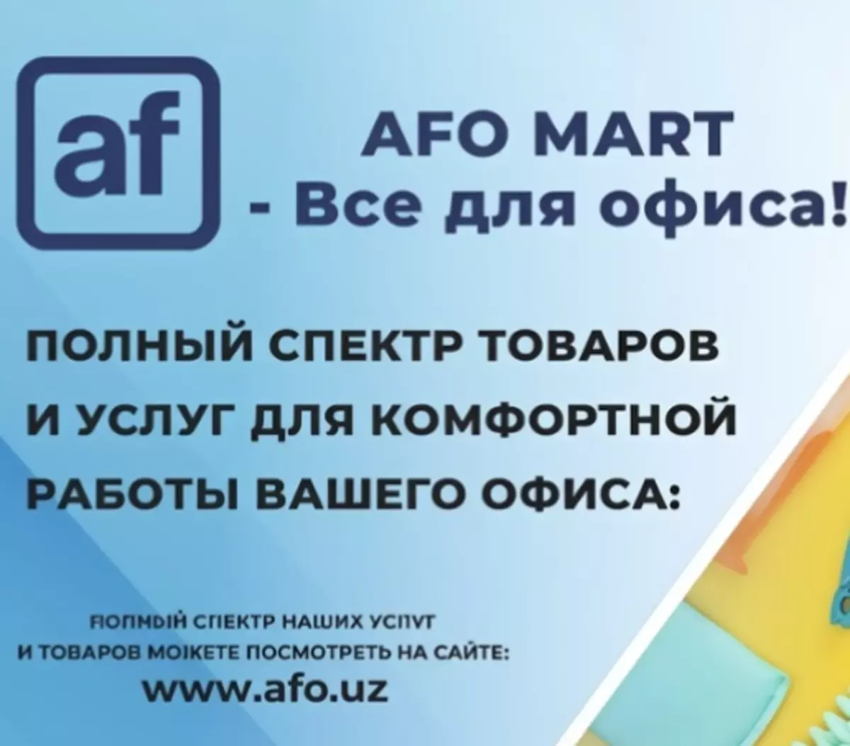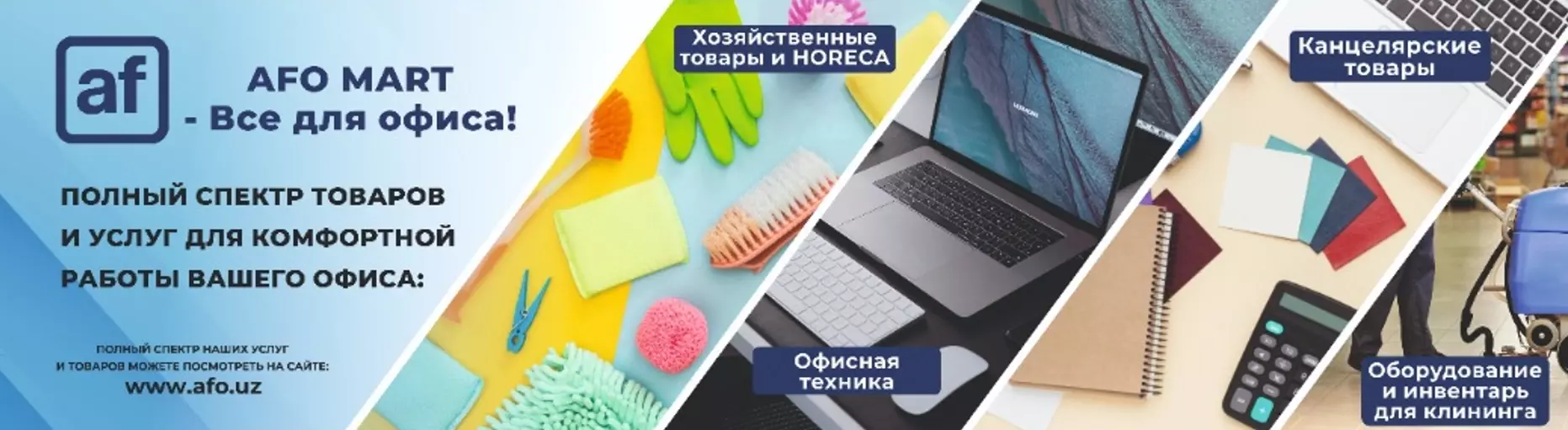 «Afo Mart» sizga o'z xurmat va ehtiromimizni bildirgan holda o'z mahsulotlarimizni taklif qilamiz. Biz quyidagi yo'nalishdagi mahsulotlar savdosi bilan shug'ullanamiz: maishiy texnika, asboblar, ish yuritish, oziq-ovqat va ichimliklar, uy-ro'zg'or buyumlari, elektr jihozlari. Biz quyidagi manzilda joylashganmiz: Mirzo Ulug`bek tumani, Toshkent shahri, O‘zbekiston. Sizga qulaylik yaratish maqsadida quyidagi yetkazib berish usullarini taklif qilamiz: Kuryer xizmati, O'zi olib ketish. Mahsulotlarimizni quyidagi hududlar bo'yicha yetkazib berishni amalga oshiramiz: O‘zbekiston. Biz quyidagi to'lov turlarini qabul qilamiz: naqd, pul o'tkazish, korporativ karta, uzcard terminal, humo terminal, onlayn to'lov.
